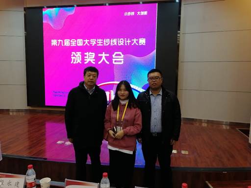 第九届全国大学生纱线设计大赛于11月17日在西安工程大学落下帷幕,我校由姜展、邢明杰老师指导,15级纺织工程专业王婷、欧阳兆锋、万欣同学完成的参赛作品《来自于“过去”的新型纱线》,从来自全国各纺织院校的228件作品中脱颖而出,荣获本届纱线设计大赛的特等奖,姜展老师被评为优秀指导教师,王婷同学受邀参加了本次纱线设计大赛的颁奖大会。