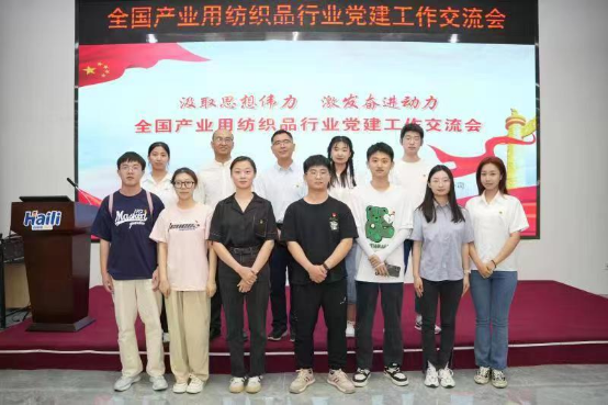 汲取思想伟力、激发奋进动力,6月9日,全国产业用纺织品行业党建工作交流会在山东青岛召开,行业产业集群、企事业单位基层党组织代表、相关高校师生参会,围绕我国产业用纺织品行业高质量发展任务,展示了行业基层党建工作成果。会议由中国产业用纺织品行业协会主办,青岛市市北区委组织部、青岛海丽雅集团有限公司承办。非织造研究院党支部组织12名师生党员参加交流会。