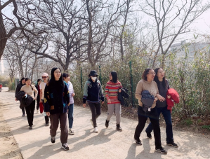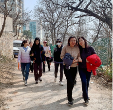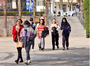 下午13:30分,参加健步行活动的女教职工在睿思楼门前整队集合,伴随着一路春色向浮山出发,途径师范学院、体育场、到达浮山脚下。大家结伴游览浮山风景,一边欣赏沿途美景,一边交流谈心,锻炼了身体、交流了思想、分享了快乐、增进了友谊。
