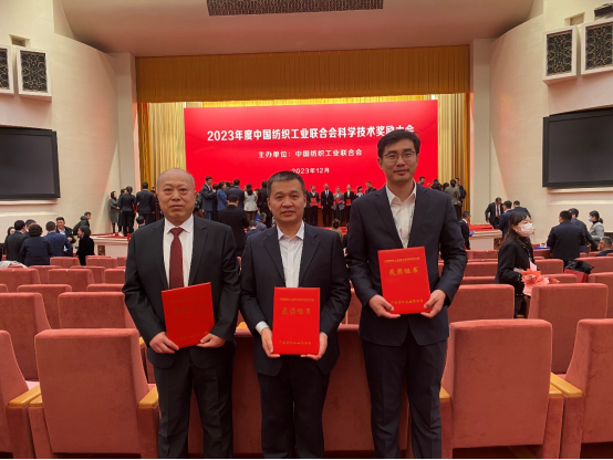 成果“高耐碱高耐氧漂分散染料制备关键技术及产业化应用”获中国纺联科技进步奖一等奖,成果“全能型针织物松式连续化浸煮工艺练漂新技术与专用装备”获中国纺联科技进步奖二等奖。学院院长许长海教授、徐维敬副教授、苗大刚副教授作为获奖代表受邀参加会议。