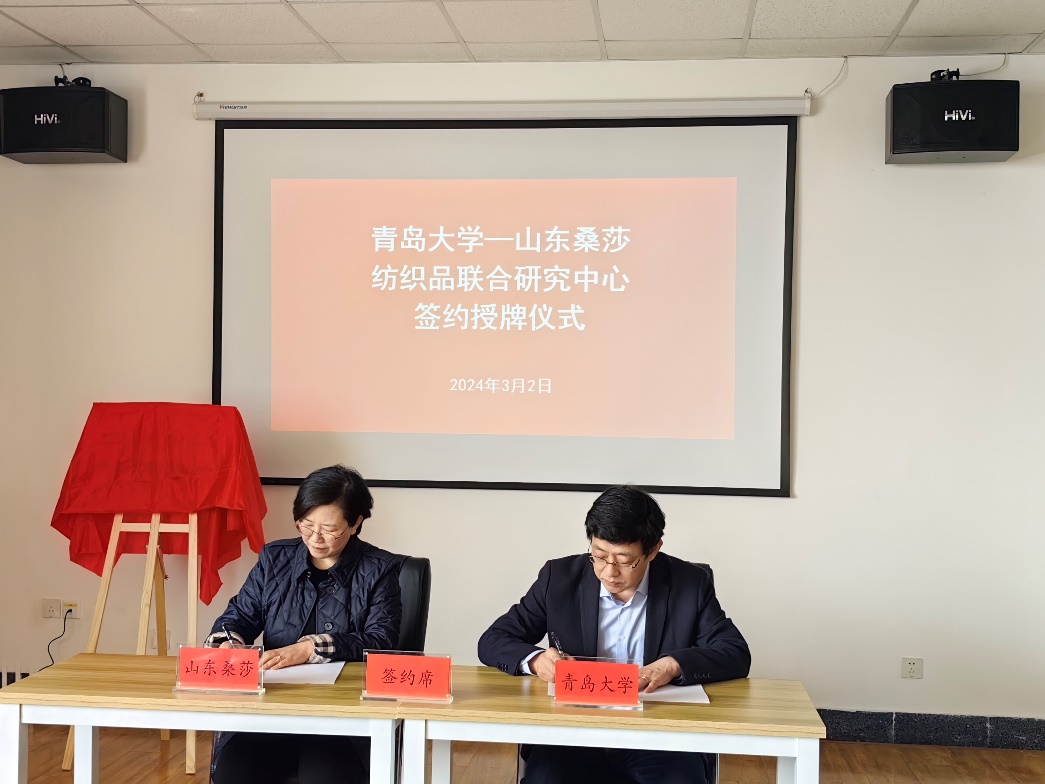 与山东桑莎制衣集团有限公司举行共建纺织品联合研究中心签约仪式。大学科技处副处长孙更新,51吃瓜网