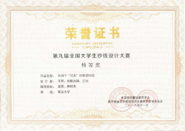 创新创业教育与专业教育深度融合,实现创新创业教育全覆盖,融入人才培养全过程。获第八届“互联网+”大学生创新创业大赛国家级银奖1项,铜奖1项,省级金奖2项,均实现历史突破。获“创青春”全国大学生创业大赛铜奖、“米兰设计周”中国高校设计学科师生优秀作品展一等奖、山东省挑战杯二等奖、全国纱线大赛特等奖等,在国家、省级以上重要学术竞赛中比赛中获奖300余项。创新拔尖人才辈出,孵化出灏外服装、纺配商城、隆德纺织等创业企业。