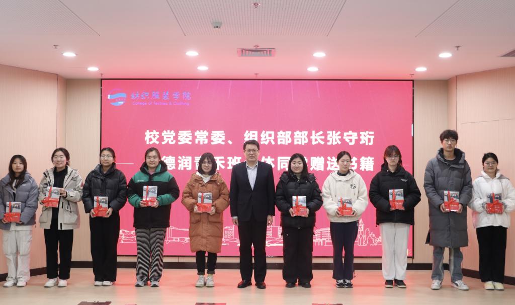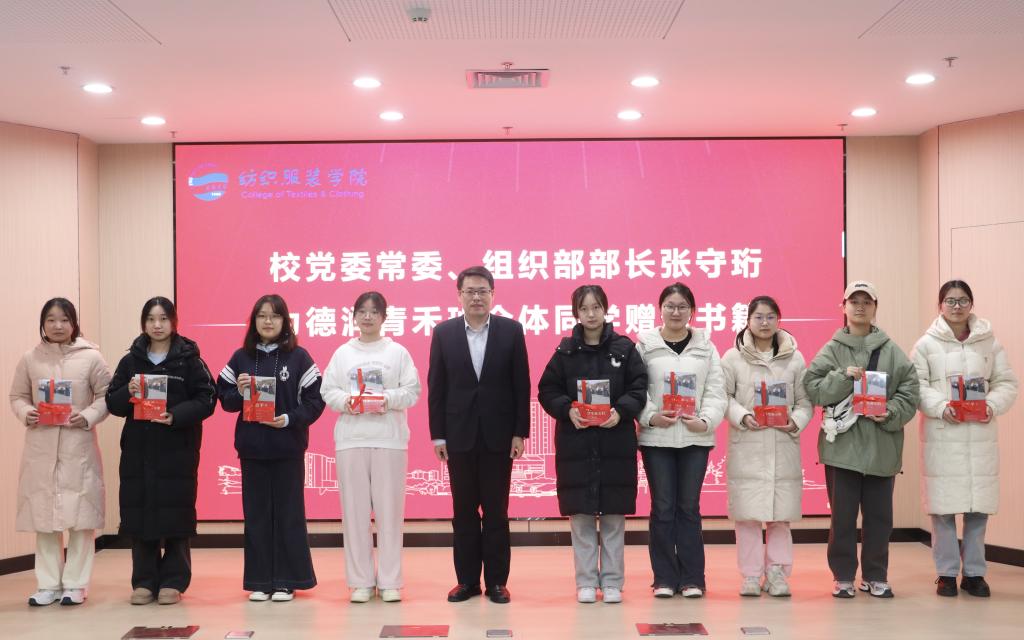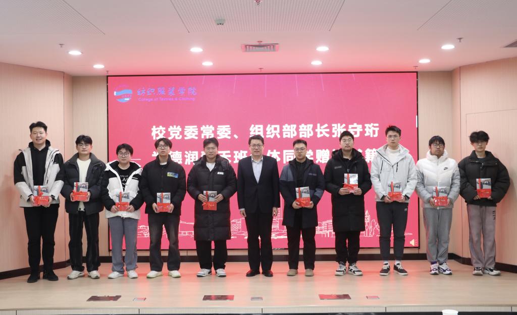 张守珩为同学们赠送了《习近平与大学生朋友们(第二卷)》,鼓励同学们在求学的道路上不断磨砺自己、提升自己,为祖国发展贡献自己的智慧和力量